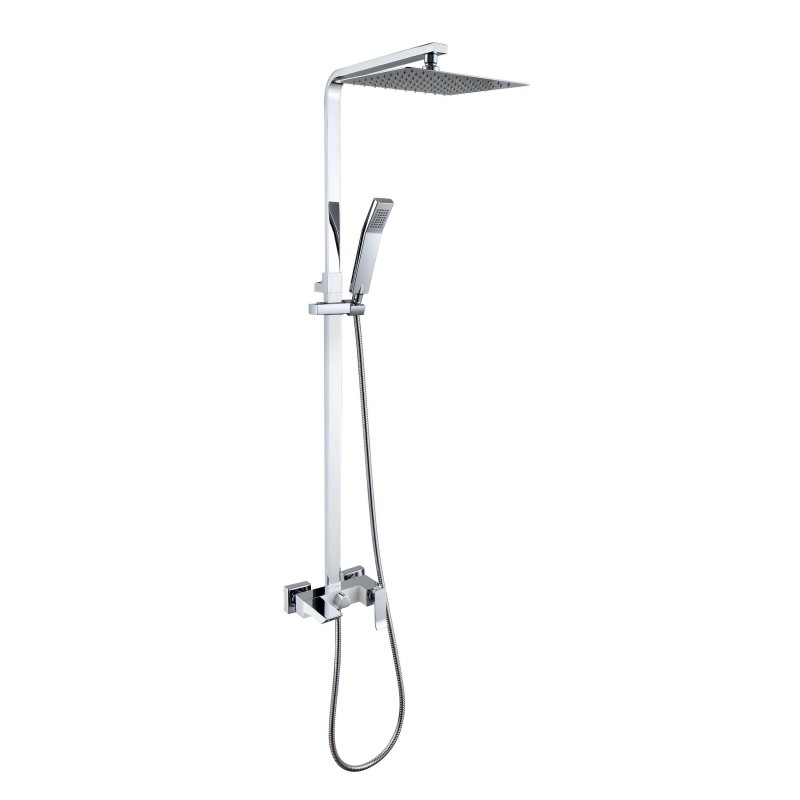 Смеситель для ванны и душа с регулируемой высотой штанги, поворотным изливом и верхней душевой лейкой "Тропический...