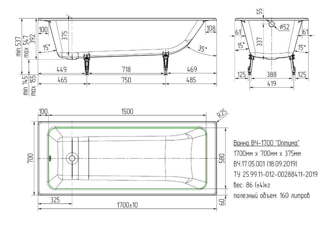 Ванна чугунная «Классик» реализуется в категории качества «Универсал».